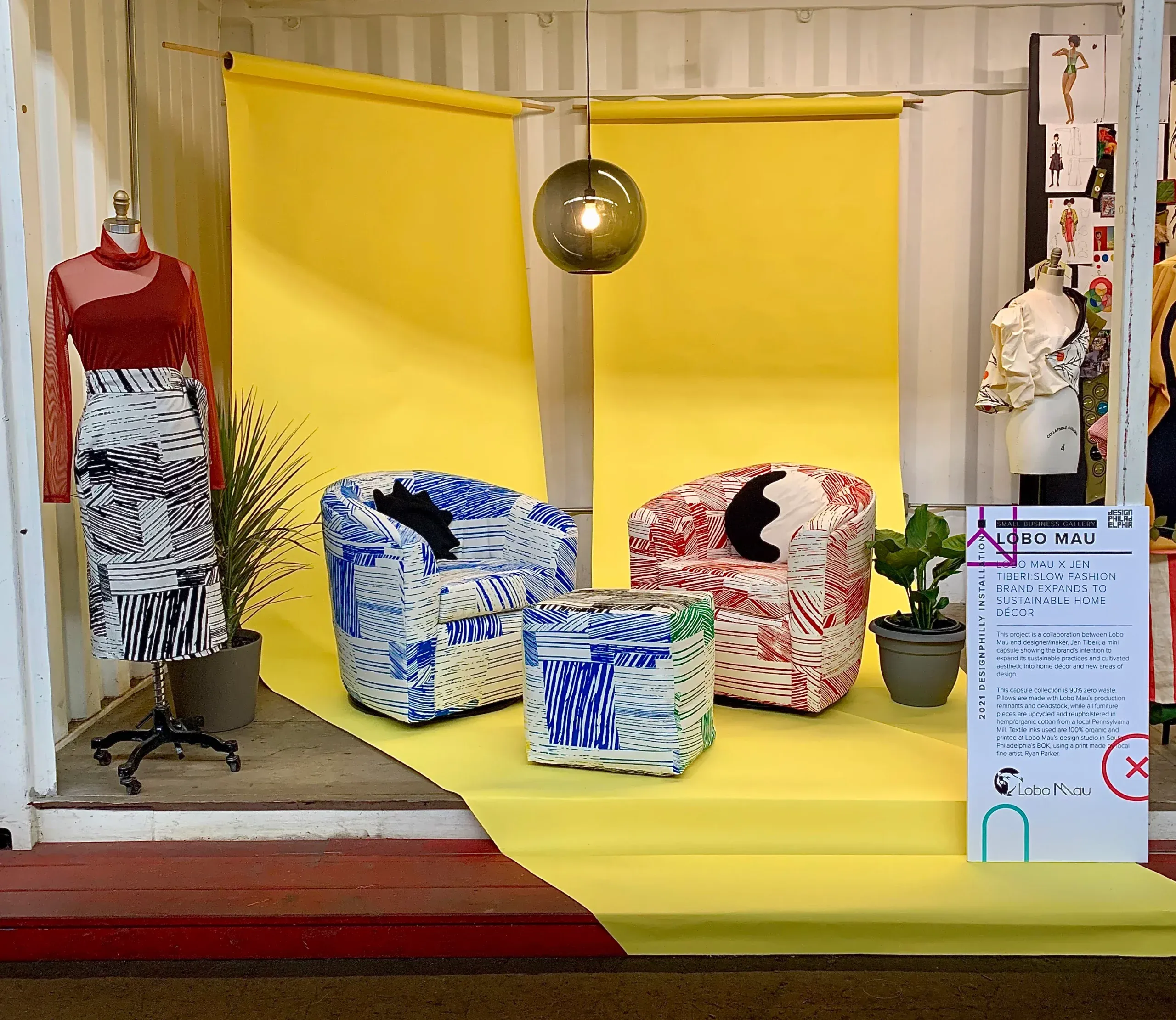 Something remarkable is happening in Philadelphia’s BOK building. Lobo Mau, traditionally a clothing brand, is transforming its textile remnants into stunning furniture pieces.