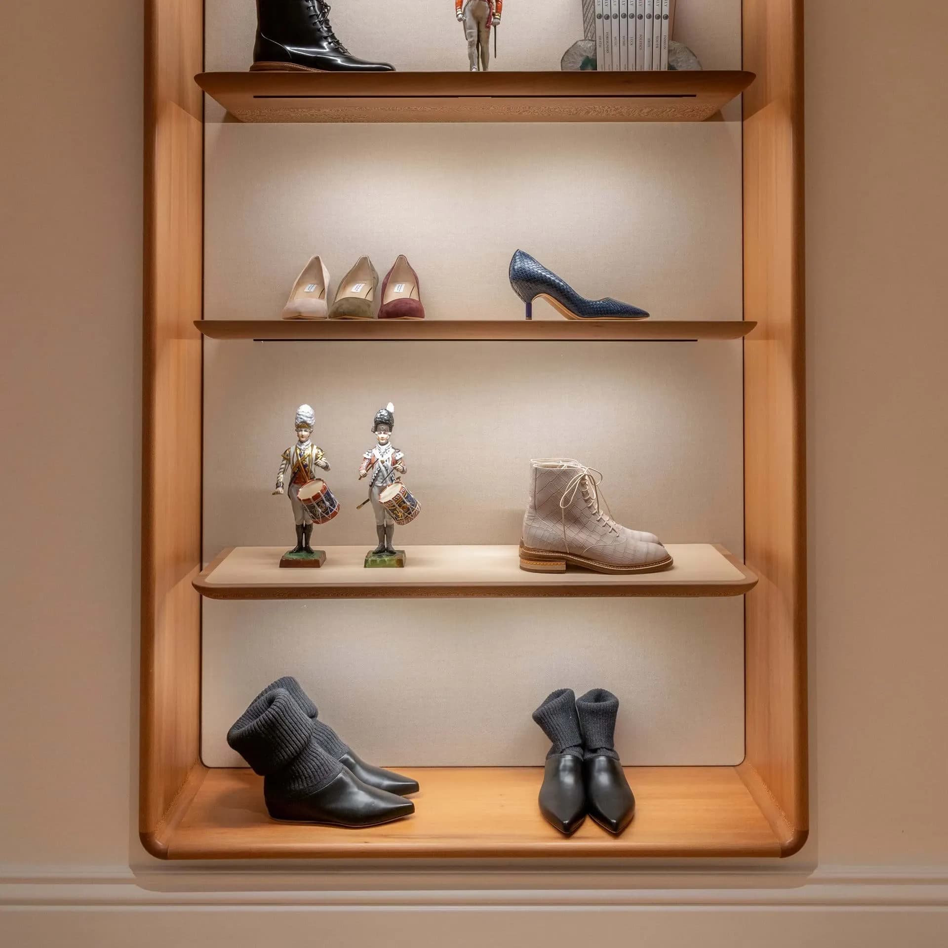 In the heart of Mayfair, Gabriela Hearst’s London flagship — designed by Foster + Partners — pairs contemporary restraint with a sense of lasting craft. To ground the space, we supplied 100 m² of reclaimed English oak in herringbone, salvaged from an officer’s mess in Shrewsbury and restored by hand. Its quiet patina, shaped by decades of prior use, brings a lived-in refinement beneath the crisp minimalism of the interior, allowing the textures, light and tailoring of the collection to sit on a floor with history in its grain.