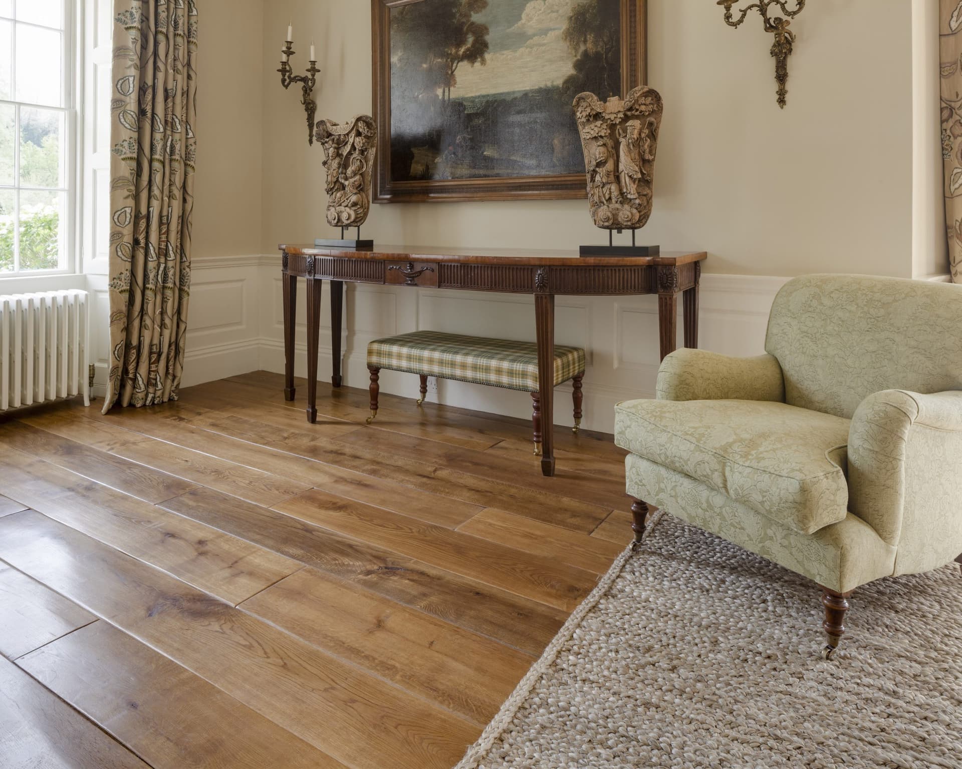 Widcombe Manor, a Grade I listed Georgian house in Bath, first built in 1656, has undergone a complete renovation featuring our Castle engineered platform. Because the entire property now runs on underfloor heating, every oak board had to be engineered — not solid — to ensure maximum stability without compromising depth or character. This is precisely what our Castle platform was developed for: a structurally superior engineered format built to the highest possible specification for heritage-scale restorations.